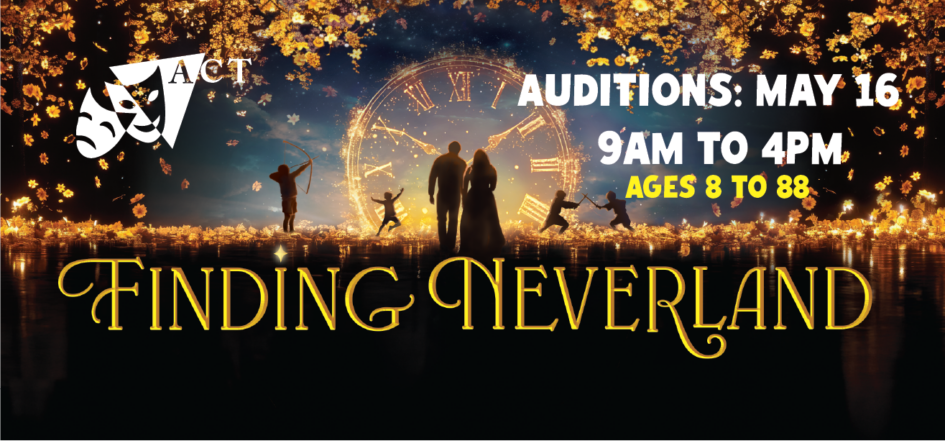 Alpine Community Theater (ACT) sends out a call for AUDITIONS for Finding Neverland. The show features roles for children, teens, and adults. Open auditions will be held Saturday, May 16th, at the Liahona Preparatory Academy, located at 2464 West 450 South, Pleasant Grove, from 9:00am to 4:00pm. ACT’s Show dates of Finding Neverland will be July 10-20, 2026.