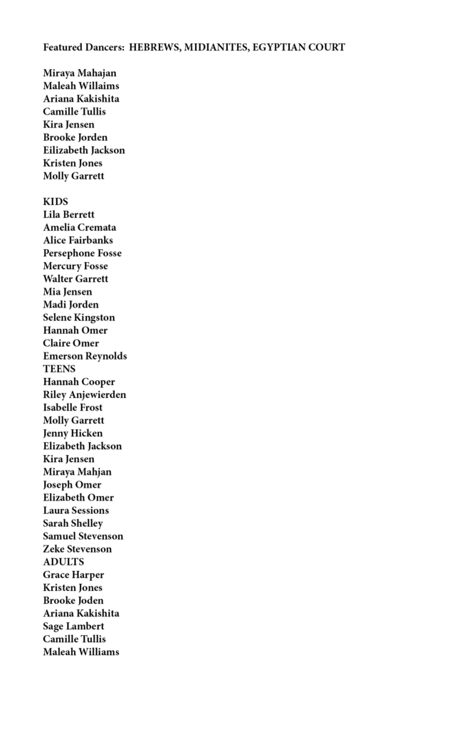 Moses in the Desert Ensemble, Featured Dancers