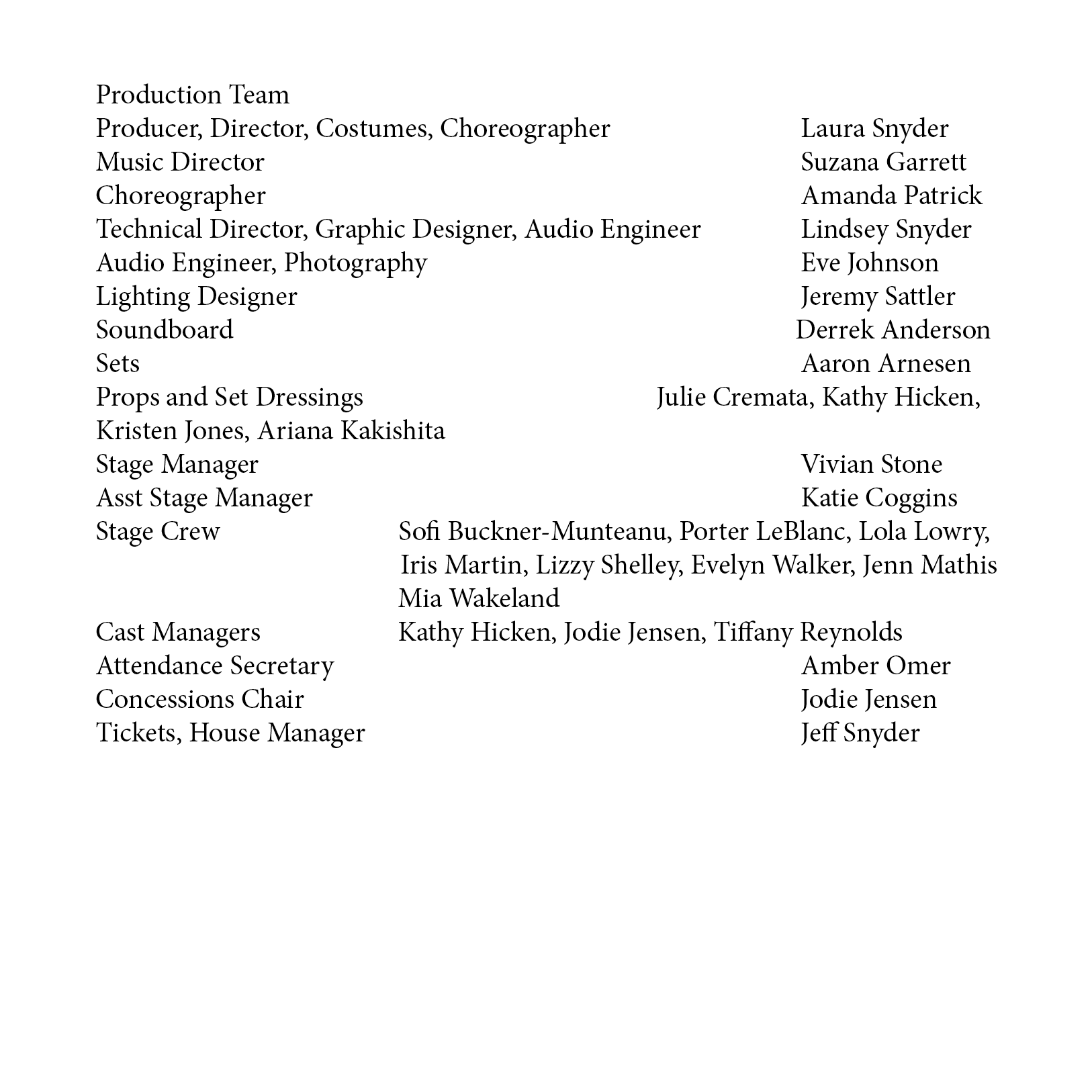 Director/Choreographer/Producer – Laura Snyder