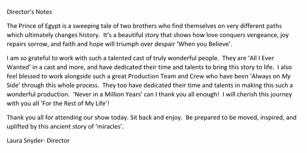 Prince of Egypt Scenes and Musical Numbers
